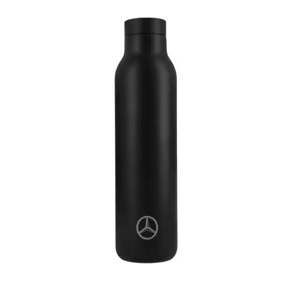Die Mercedes-Benz Trinkflasche im G-Klasse Design kombiniert stilvolles Auftreten mit nachhaltiger Funktionalität. Entwickelt in Zusammenarbeit mit der dänischen Premiummarke eva solo, überzeugt die Flasche durch hochwertige Materialien und eine doppelwandige Isolierung – ideal für unterwegs, im Alltag oder beim Sport.