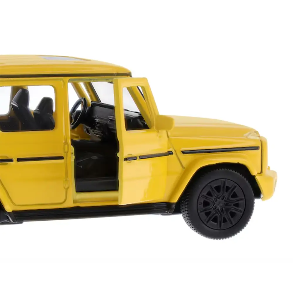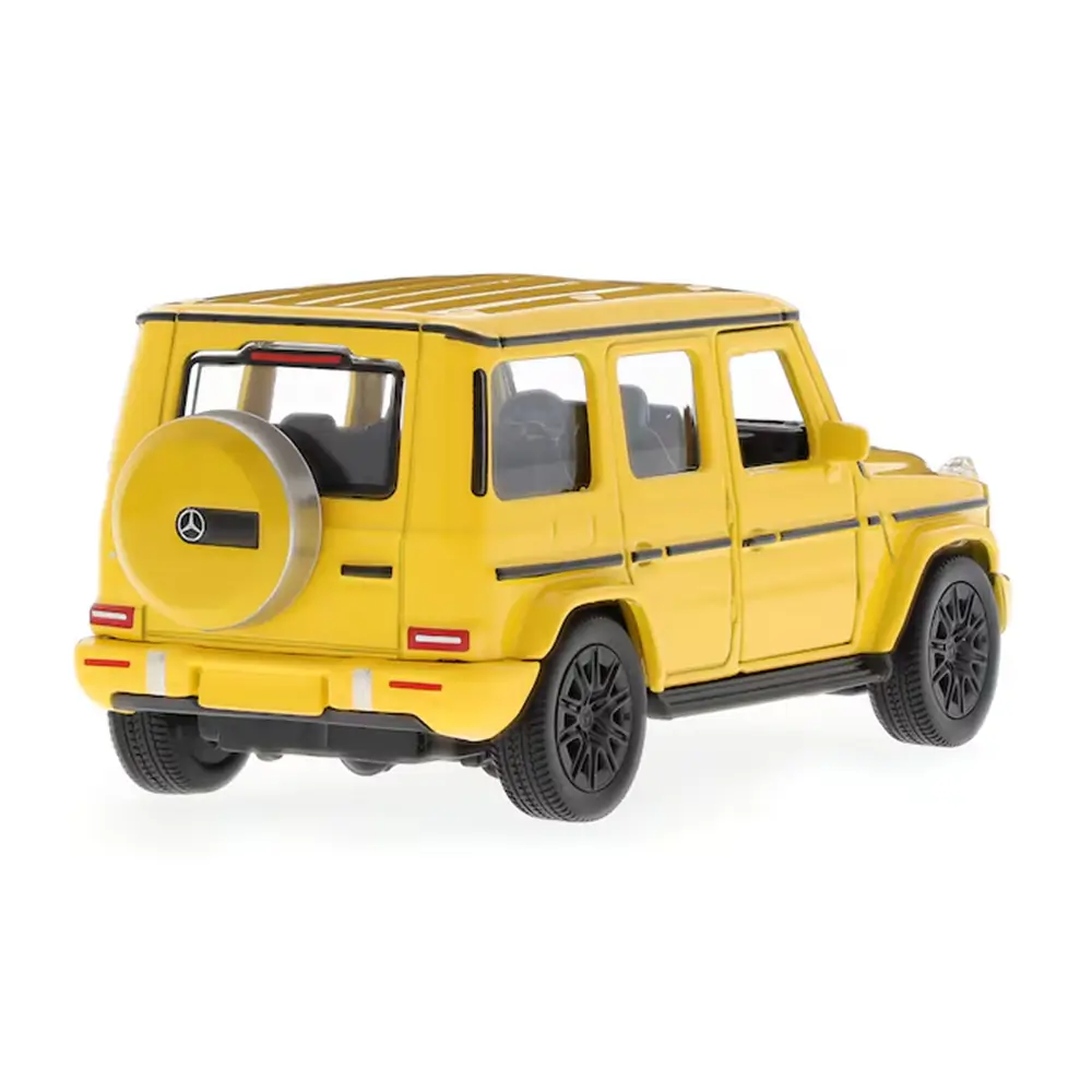 Ob zum Spielen oder Sammeln – das Mercedes-Benz G-Klasse Modellauto im Maßstab 1:43 begeistert mit detailgetreuer Optik und funktionalem Spielspaß. Die MANUFAKTUR-Lackierung in sonnengelb uni und die authentisch gestaltete Karosserie machen es zu einem echten Hingucker. Dank der Pullbackfunktion fährt das Auto nach dem Zurückziehen selbstständig los – ideal für kleine Rennfahrer ab 3 Jahren. Fahrer- und Beifahrertüren lassen sich öffnen und geben den Blick ins Innere frei. Ein besonderes Extra ist die beigelegte Ausmalkarte, die sich hinter dem Modell in der Verpackung befindet. Diese Verpackung enthält auch Platz zum Ankreuzen gesammelter Varianten sowie ein Feld für persönliche Einträge.