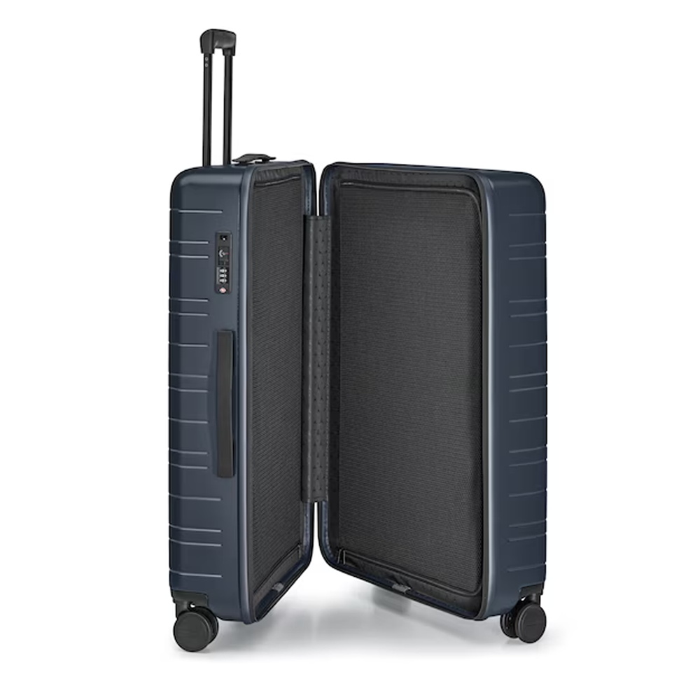 Der hochwertige Hartschalenkoffer H7 von Mercedes-Benz überzeugt mit modernem Design, hoher Funktionalität und durchdachtem Komfort für jede Reise. Mit einem großzügigen Volumen von ca. 90 Litern eignet er sich ideal für längere Geschäftsreisen oder Urlaube. Die robuste Polycarbonat-Schale schützt den Inhalt zuverlässig, während hochwertige Komponenten wie japanische Drehrollen und ein TSA-Zahlenschloss für maximale Sicherheit und Komfort sorgen. Das Co-Branding mit HORIZN STUDIOS sowie das edle Innenfutter mit Mercedes-Benz Pattern runden das Gesamtbild stilvoll ab.