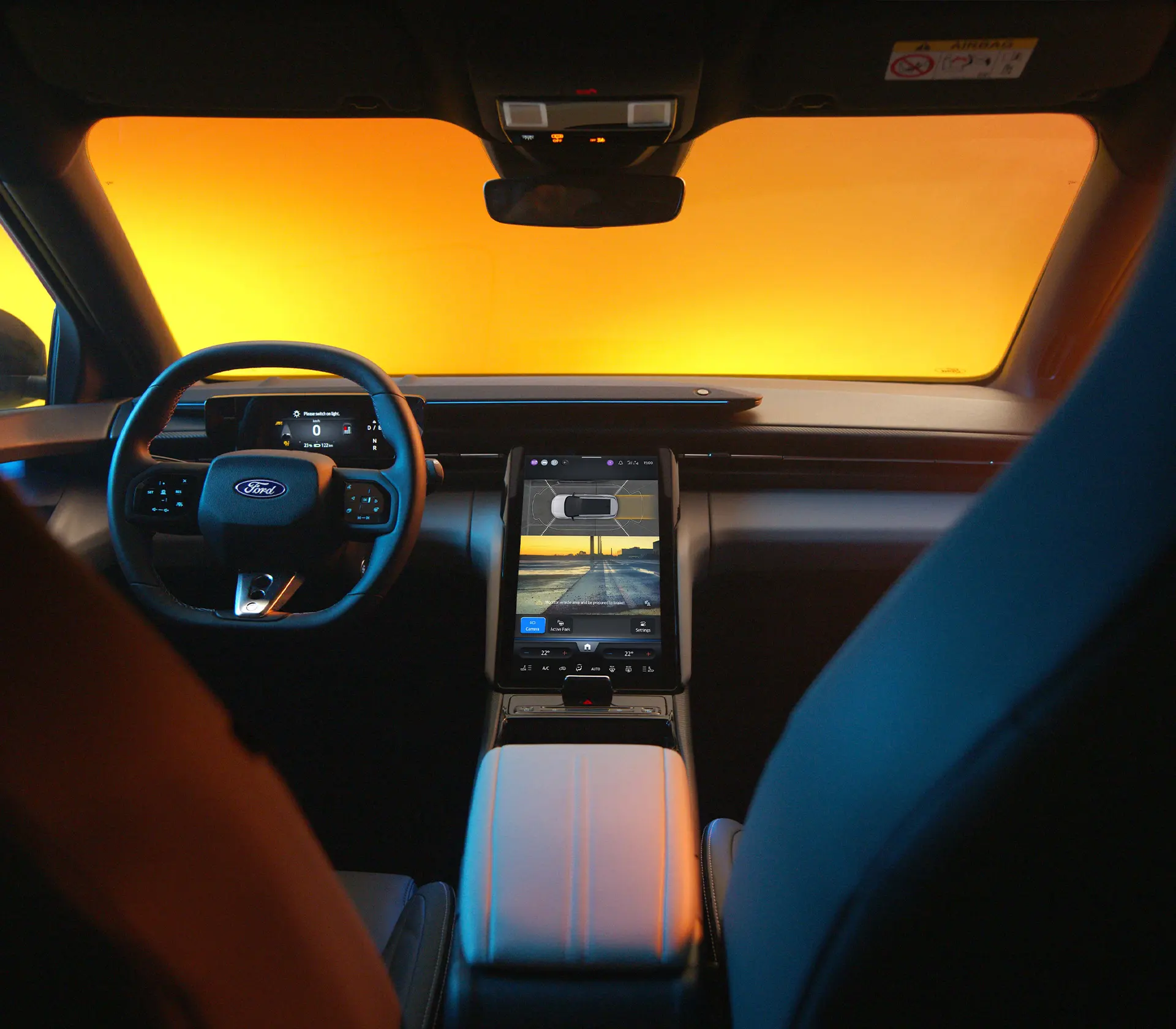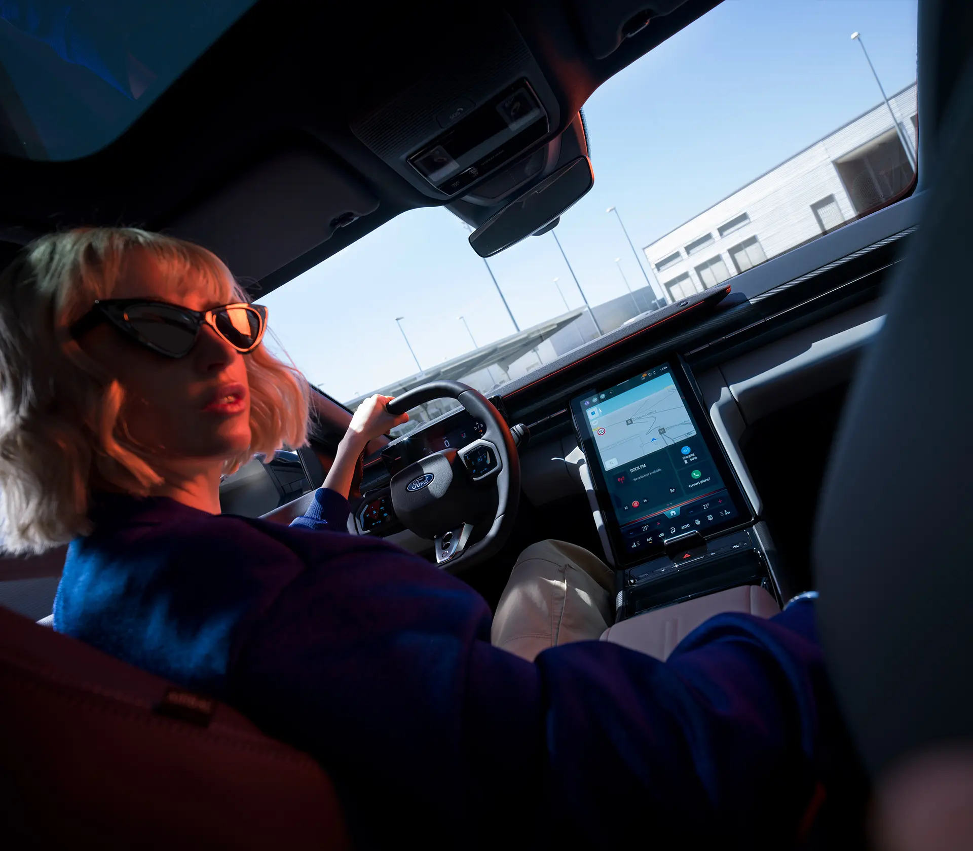 Der Innenraum des vollelektrischen Ford Capri verbindet sportliche Eleganz mit durchdachter Funktionalität. Die optionalen 12-fach verstellbaren Sportsitze sind beheizbar und sorgen mit einer Massagefunktion für entspannenden Komfort auch bei dynamischer Fahrt. Der Ford Capri verfügt über viel Stauraum, beispielsweise unter der Mittelarmlehne. Die großzügige MegaConsole mit 17 Litern Stauraum bietet ausreichend Platz für Laptop, Tasche oder Flaschen. Hinter dem beweglichen 14,6-Zoll SYNC Move Touchscreen verbirgt sich das abschließbare My Private Locker, wodurch persönliche Gegenstände sicher verwahrt werden können. Der höhenverstellbare Ladeboden im Gepäckraum erlaubt eine flexible Raumnutzung für bis zu 572 Liter Volumen; dank der praktischen Durchladefunktion in der Rückbank können auch längere Gegenstände problemlos transportiert werden. Zudem öffnet optional ein Panoramadach den Blick nach oben und unterstreicht das offene und moderne Raumgefühl.