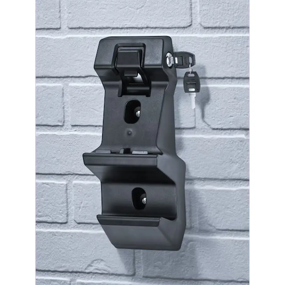 Dieser Artikel ist die hochwertige Wandhalterung des Flexiblen Ladesystems Pro, die sich ideal als stationäre Wallbox einsetzen lässt. Gefertigt aus robustem, schwarzem Kunststoff, überzeugt die Halterung mit einem integrierten Sicherheitsschloss, das optimal vor Diebstahl schützt.