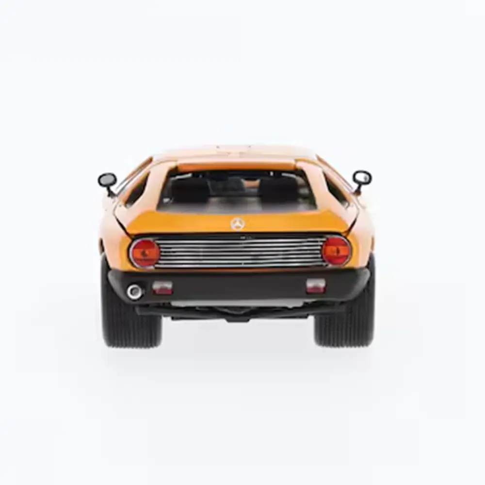 Das Experimentalfahrzeug C 111 / II (1970) in weißherbst von Minichamps im Maßstab 1:43 fängt den innovativen Geist des Originals ein. Bekannt für seine extreme Keilform, nach oben öffnende Flügeltüren und markante Lackierung, setzte es in den 1970er-Jahren technische Maßstäbe. Das handmontierte Modell besticht durch originalgetreue Interieur-Details und wird auf einem bedruckten Sockel in einer Mercedes‑Benz Classic Design-Verpackung präsentiert.