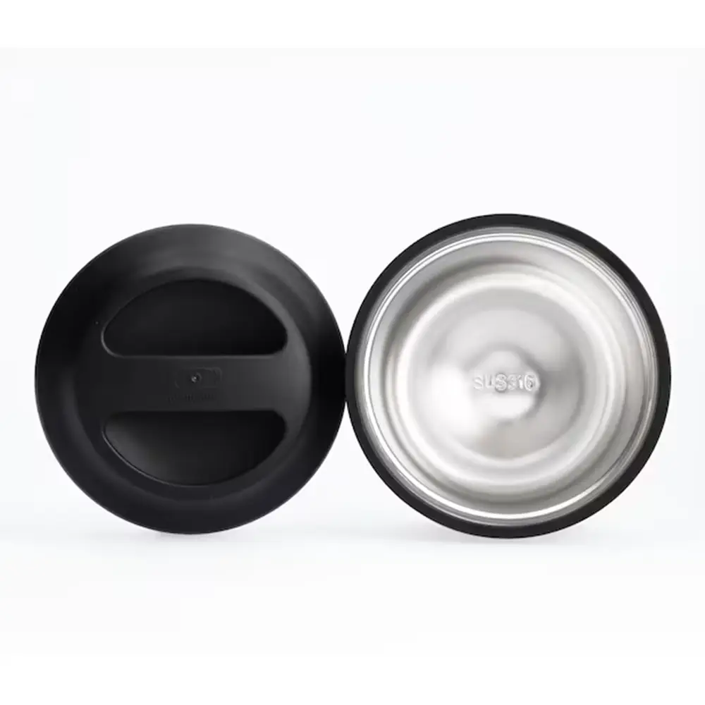 Perfekt für unterwegs – die schwarz-silberne Isotherm-Lunchbox hält Speisen bis zu 10 Stunden warm oder kalt, je nach Inhalt und Nutzung. Dank der hermetisch dichten Konstruktion aus Edelstahl, Polypropylen und Silikon bleibt alles sicher verschlossen. Der Behälter ist spülmaschinengeeignet, während der Deckel von Hand gereinigt werden sollte.